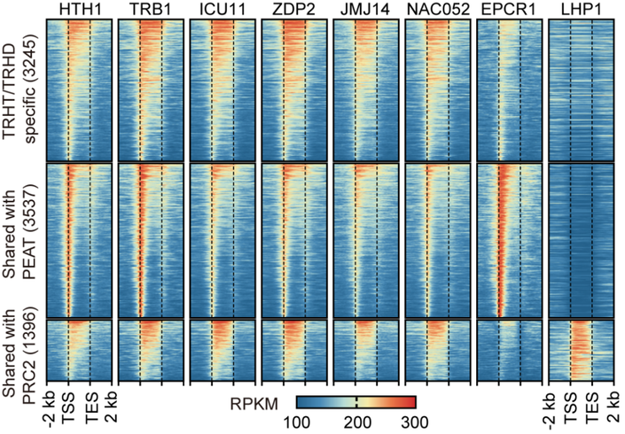 TRHT/TRHD复合体组分在靶基因上的富集信号
