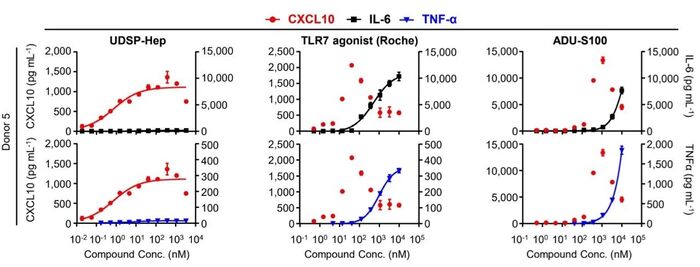 UDSP-Hep诱导潜在毒性因子的能力显著低于TLR7和STING激动剂