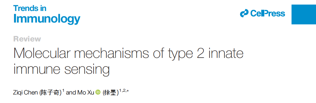徐墨团队在Cell Press旗下期刊 Trends in Immunology 在线发表综述文章“Molecular Mechanisms of Type 2 Innate Immune Sensing”。该文围绕“屏障细胞如何感知II型刺激并启动警报素释放”以及“树突状细胞如何获得驱动Th2分化的功能状态”两条主线,系统总结了II型天然免疫识别领域的最新进展,并提出了该领域若干关键未解问题。文章重点讨论了簇细胞化学感受环路、上皮细胞膜穿孔、蛋白晶体、蛋白酶活性以及神经—免疫调控等机制,为理解过敏反应和抗寄生虫免疫的起始过程提供了新的整合框架正文。